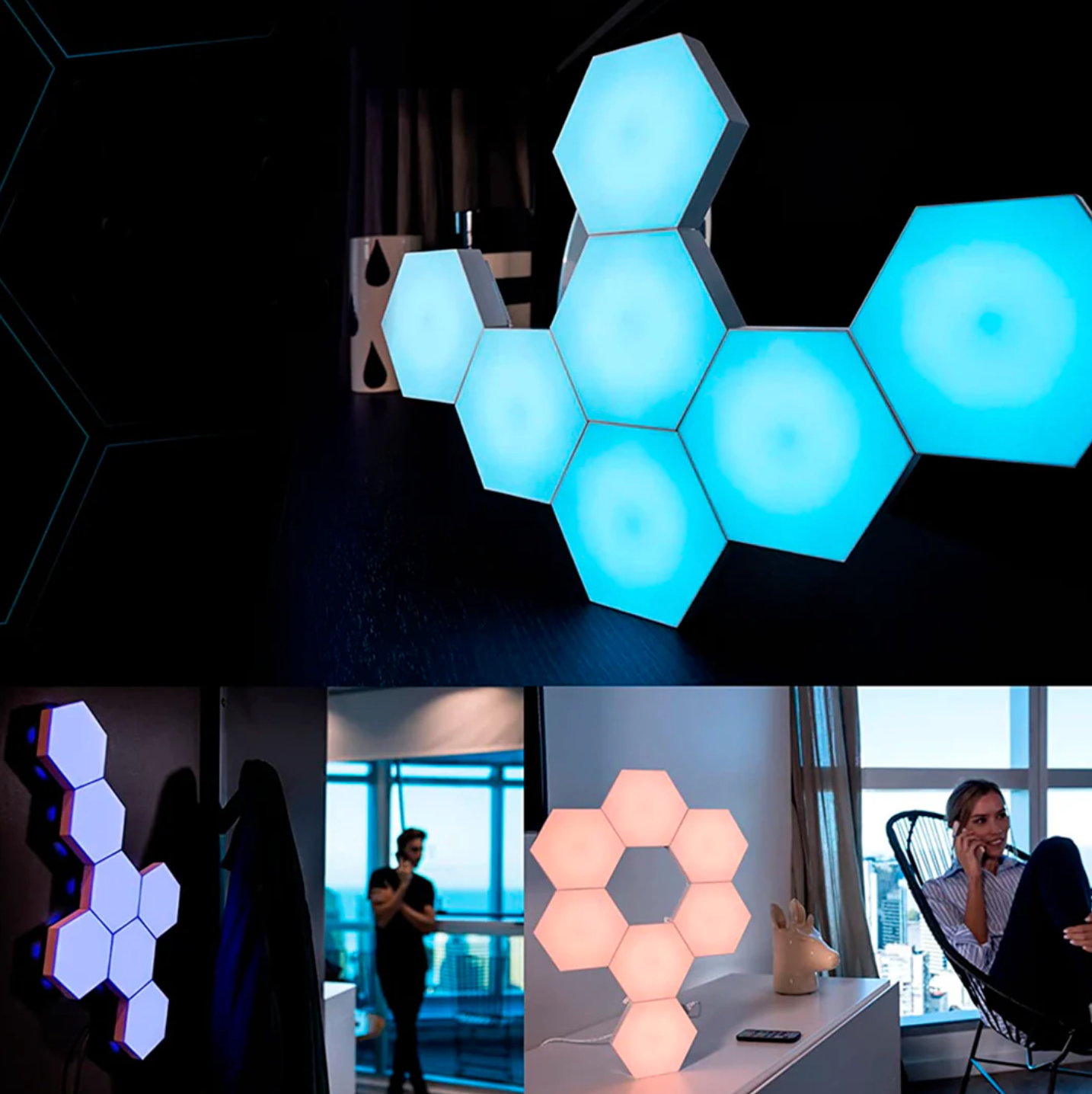 Ya sea para una celebración especial, una fiesta temática o simplemente para darle vida a tu espacio, nuestro set de LEDs RGB es la elección perfecta. Ajusta el ambiente con funciones de atenuación, velocidad y música/sonido activo. Crea recuerdos inolvidables con una iluminación única que aporta diversión y vitalidad a tu dormitorio, sala de estar o cualquier rincón especial de tu hogar. ¡Ilumina tu mundo de forma única y creativa con nuestro set de luces hexagonales!